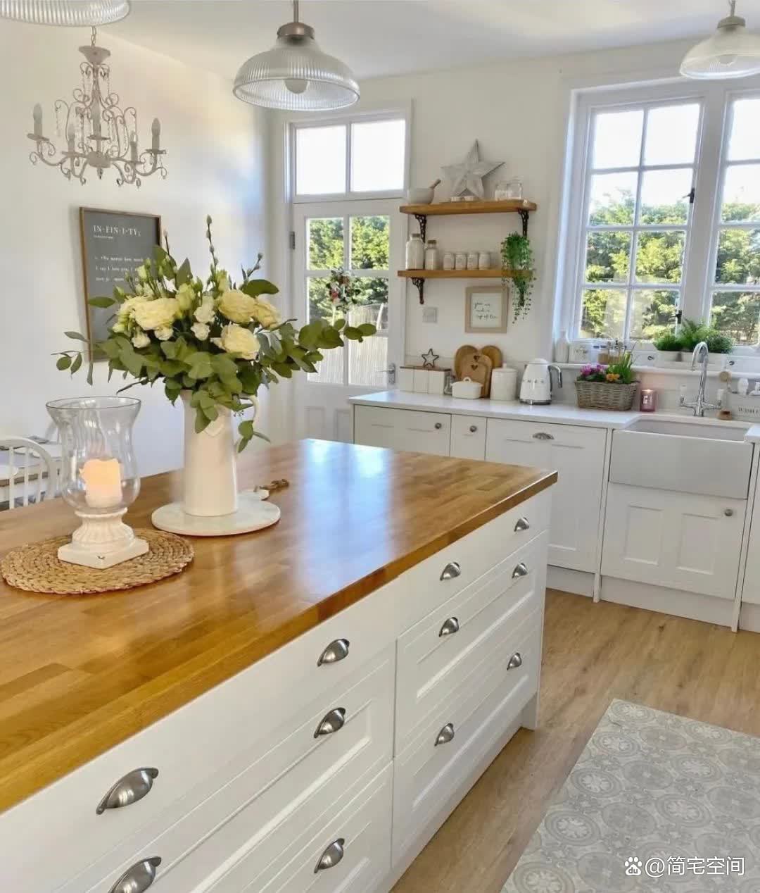 厨房,这个家的“心脏”,被打造得明亮而敞亮。白色的橱柜与原木的操作台相得益彰,插花与烹饪的乐趣在这里得到了完美的融合。色彩风格一致的储物罐和花瓶,不仅方便了日常的使用,更增添了几分生活的仪式感。而那个连接户外院子的早餐角,更是让人在享受美食的同时,也能欣赏到户外的美景,感受到生活的惬意与悠闲。