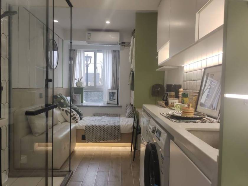 厕所在房间内,没有了抢厕所的烦恼,没有室友吵闹,没有了押一付三的压力,为自己的沪漂生活找到一片净士一个温馨的小窝。